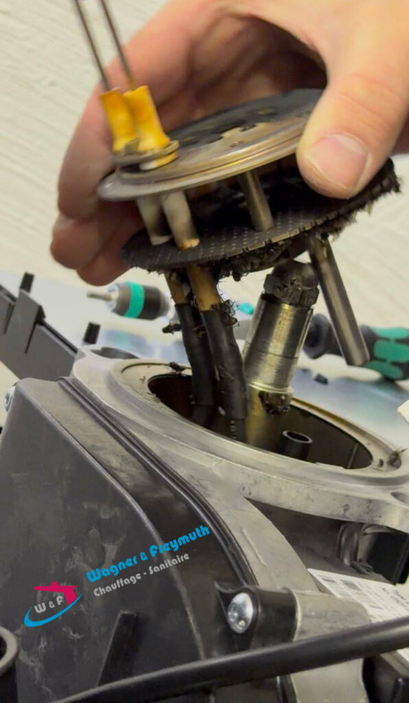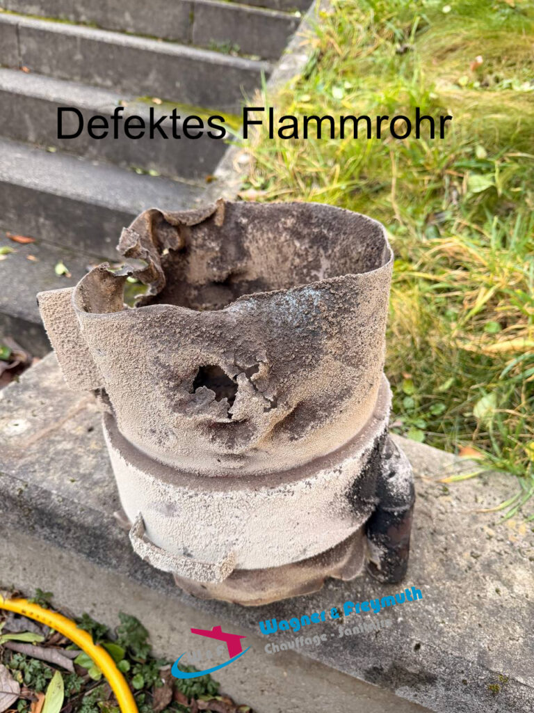 Defektes Flammrohr einer Heizungsanlage