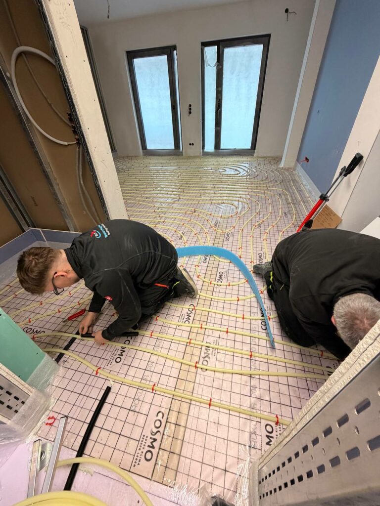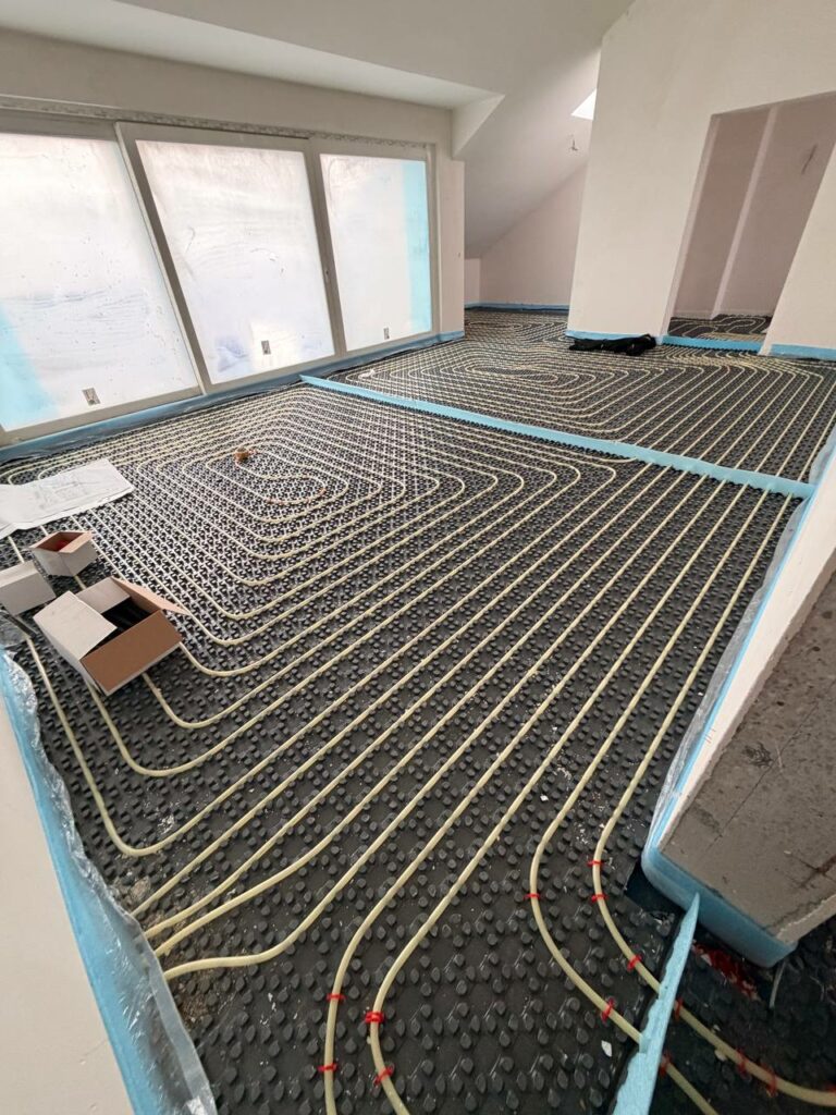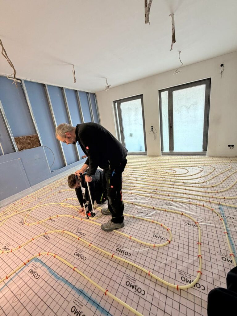 Bodenheizung verlegen auf Baustelle