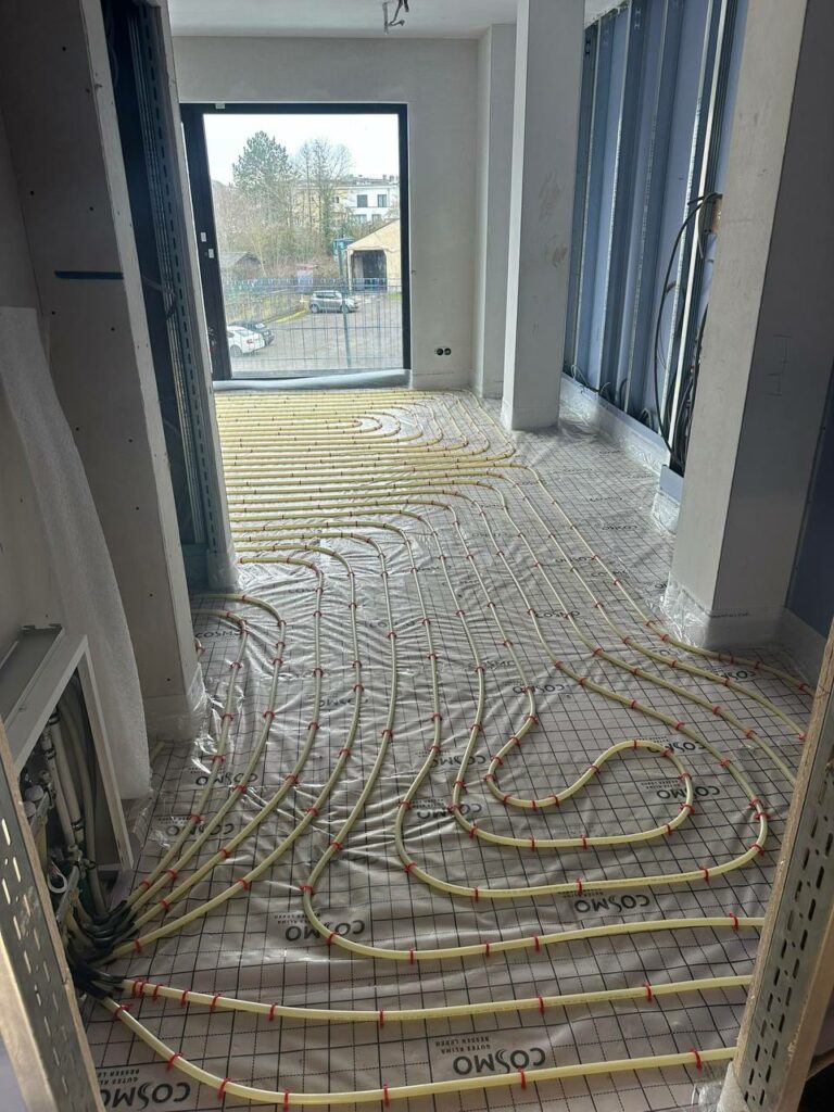 verlegen von Heizungsrohren auf der Baustelle